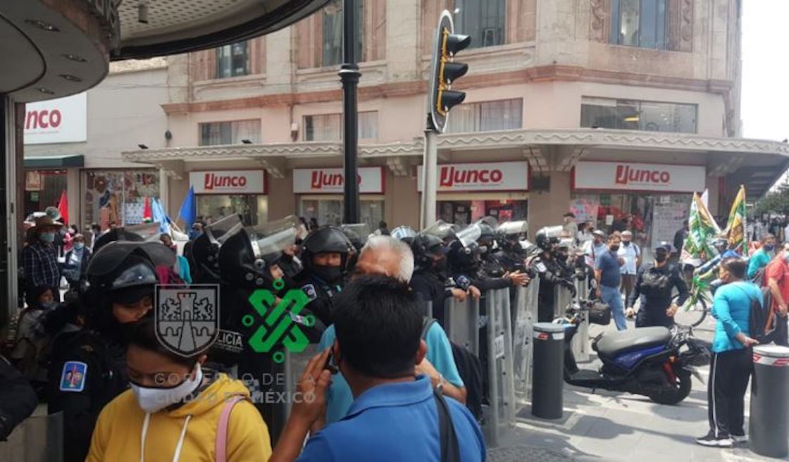 Casi al mediodía, usuarios y usuarias de redes comenzaron a compartir videos y fotos de este choque en las calles del corazón del Centro CDMX —de hecho, la Policía chilanga aprovechó para blindar las calles y cerrar la circulación en Avenida 20 de Noviembre, a partir de República de Uruguay mientras el grupo de manifestantes avanzaba.