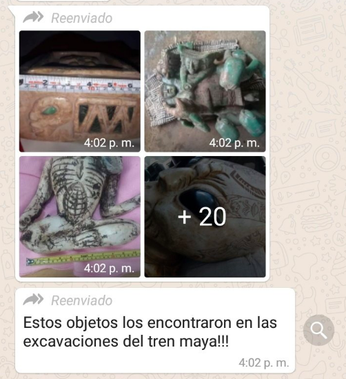 Por medio de su cuenta de Twitter, el encargado de comunicación del Fondo Nacional de Fomento al Turismo (Fonatur) para hacer el Tren Maya, Adrián Montemayor, explicó que no encontraron estas figuras en las excavaciones.