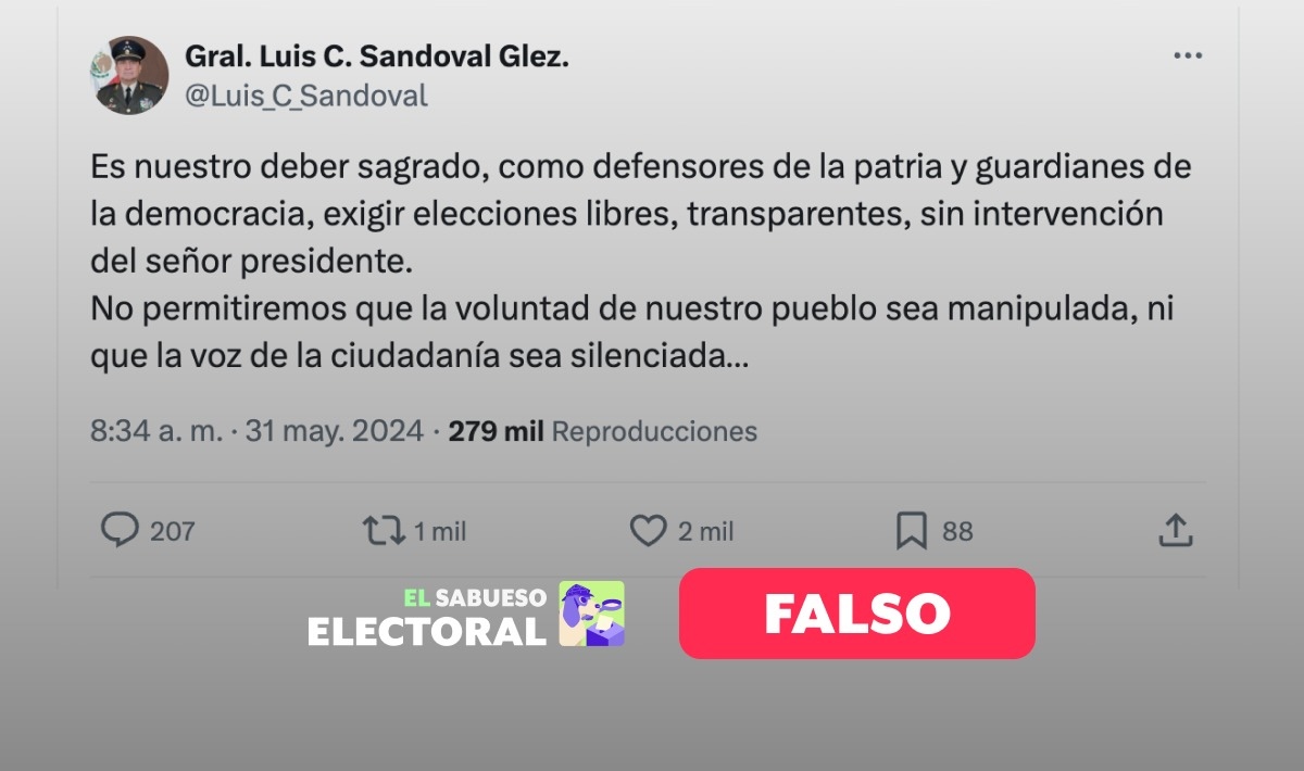 Qué desastre se armó en Twitter —o bueno, X— por un mensaje que sacó de onda a medio México en plena veda electoral. En una cuenta identificada con Luis Cresencio Sandoval, el General titular de la SEDENA, se emitieron avisos extrañísimos.